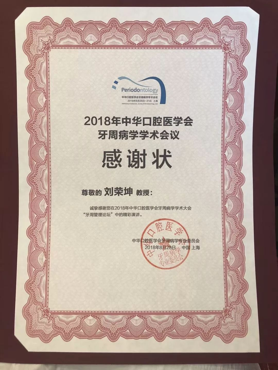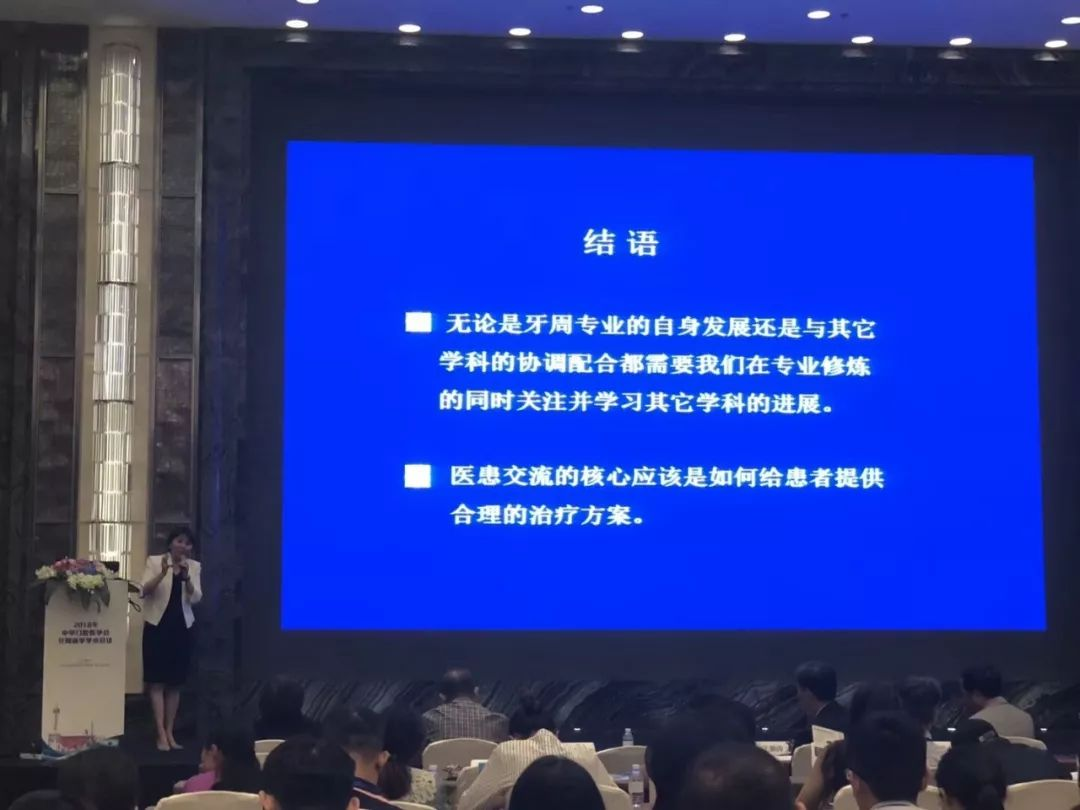 受中华口腔医学会牙周病学专业委员会特邀,五月花口腔诊所刘荣坤主任在上海举办的“2018年中华口腔医学会牙周病学学术会议”上发表题为《敞开牙周专科的大门——论牙周与口腔其它学科的新型关系》的精彩讲演。